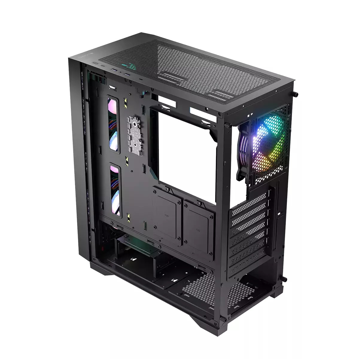 Ανακαλύψτε την απόδοση και το στυλ με το Logic Dart Pro ARGB Gaming Midi Tower, ένα κομψό κουτί υπολογιστή με πλαϊνό παράθυρο σε μαύρο χρώμα. Το συγκεκριμένο κουτί σχεδιάστηκε για gamers που αναζητούν optimal λειτουργία και υψηλή ποιότητα κατασκευής.
