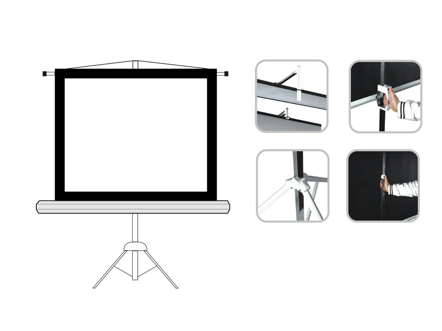 Η ματ λευκή επίστρωση με συντελεστή gain 1,0 επιτυγχάνει εξαιρετική αναπαραγωγή χρωμάτων. Ακόμα και υπό έντονες φωτιστικές συνθήκες, η προβολή διατηρεί καλό αντίθεση και επαρκή βάθος. Επίσης, η μαύρη πίσω πλευρά εξασφαλίζει ότι δεν χάνεται φως και ότι το πίσω φως δεν διεισδύει. Έτσι, η προβολή παραμένει πάντα ομοιόμορφα φωτισμένη. Ο μαύρος περίγυρος και η τέντα συμβάλλουν στην αύξηση της αντίθεσης και ταυτόχρονα στην καλύτερη επίπεδη τοποθέτηση του υφάσματος.