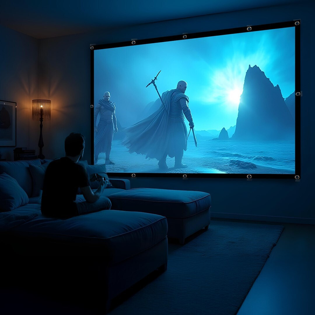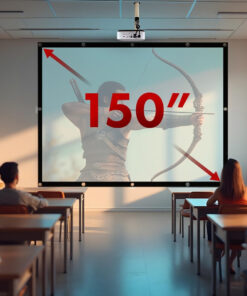 Η οθόνη προβολής είναι κατασκευασμένη από πολυεστέρα και διαθέτει τύπο τοποθέτησης ελεύθερης ή κρεμαστής χρήσης. Η φυσική αναλογία διαστάσεων είναι 4:3 και η διαγώνιος προβολής φτάνει τα 3,05 μέτρα (120″).