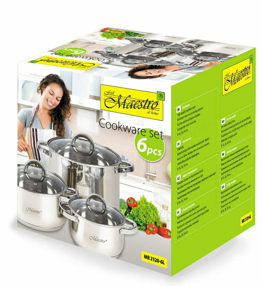 Maestro Σετ Κατσαρόλες από Ανοξείδωτο Ατσάλι 6τμχ