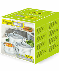Σετ κατσαρόλες κατασκευασμένες από ανοξείδωτο ατσάλι. Διαθέτουν γυάλινο καπάκι για να μπορείτε να παρακολουθείτε την πορεία του φαγητού. Είναι κατάλληλες για όλες τις εστίες (επαγωγική, κεραμική, αλογόνου, κεραμική).