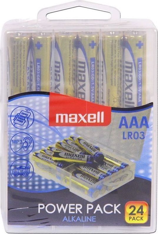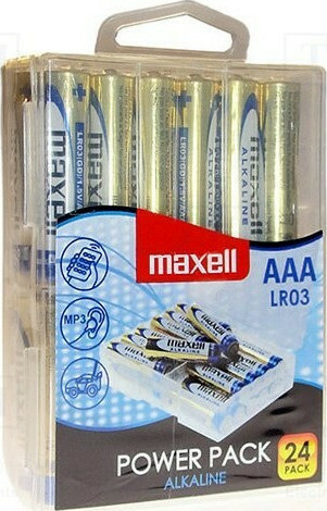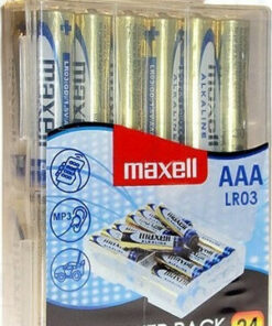 Αλκαλικές μπαταρίες της Maxell μεγέθους ΑΑΑ, ιδανικές για τηλεχειριστήρια, φακούς κι άλλες οικιακές μικροσυσκευές.