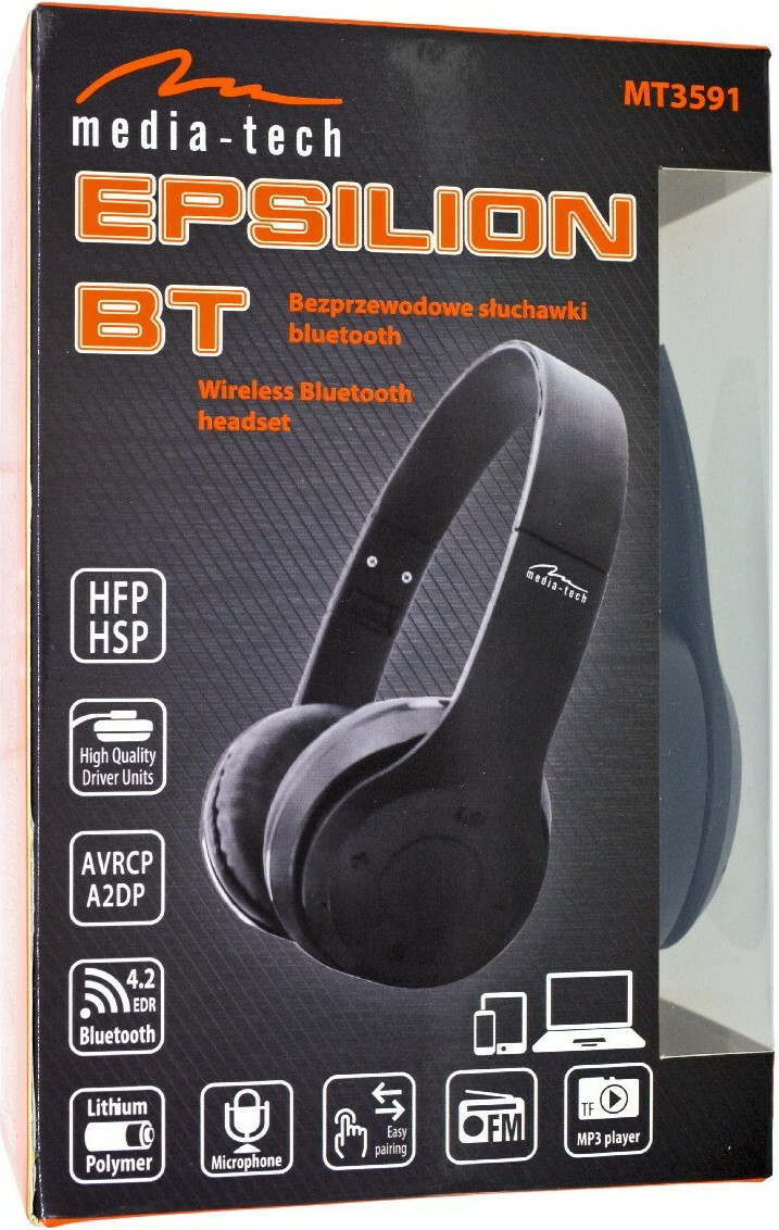 Τα Media-Tech Epsilon BT μπορούν να συνδεθούν ασύρματα αλλά και με καλώδιο με τη συσκευή σας. Είναι σχεδιασμένα να ακουμπάνε στο αυτί χωρίς να το καλύπτουν ολοκληρωτικά (on ear) και δεν απομονώνουν πλήρως από το περιβάλλον. Διαθέτουν μικρόφωνο για πραγματοποίηση κλήσεων. Οι αναδιπλούμενες κάψες τους βοηθούν στην μείωση του όγκου, κάνοντας τα πιο εύκολα στην μεταφορά.