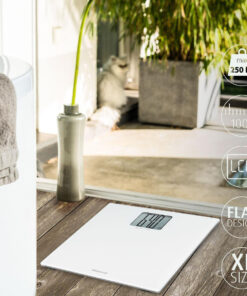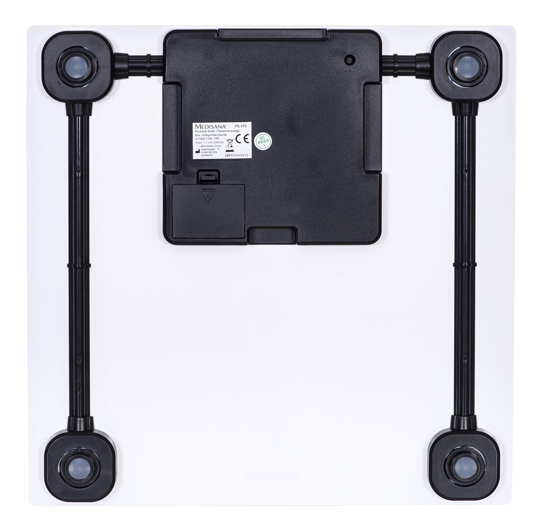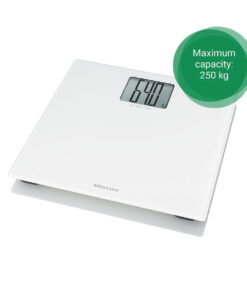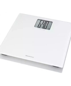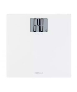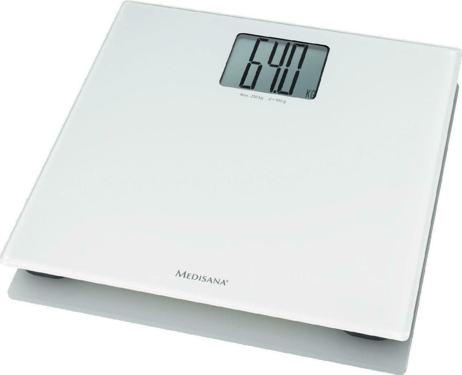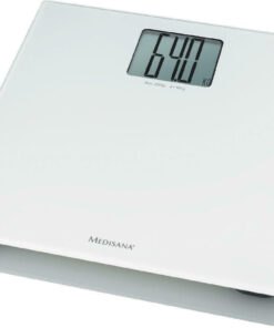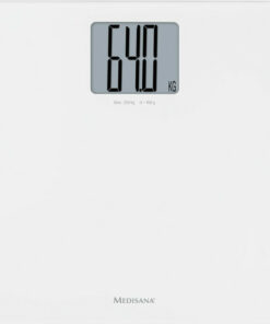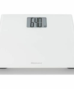 Ψηφιακή ζυγαριά μπάνιου σε λευκό χρώμα της εταιρείας Medisana, για μέτρηση του σωματικού βάρους έως και 250 κιλά.