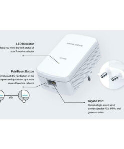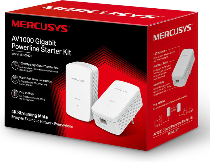 Το Mercusys MP500 KIT είναι ένα Powerline αντάπτορας που σας επιτρέπει να επεκτείνετε το δίκτυο σας μέσω της ηλεκτρικής δικτύωσης του σπιτιού σας. Υποστηρίζει το πρότυπο HomePlug AV2 που παρέχει ταχύτητες μεταφοράς δεδομένων έως 1000Mbps μέσω του ηλεκτρικού κυκλώματος. Διαθέτει ενσωματωμένο ασύρματο σημείο πρόσβασης (Access Point) που επιτρέπει τη δημιουργία ενός νέου ασύρματου δικτύου σε περιοχές όπου χρειάζεστε επιπλέον κάλυψη ενώ είναι είναι εύκολο στην εγκατάσταση και τη ρύθμιση.