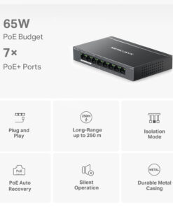 Μεγάλη εμβέλεια έως 250 m με τη λειτουργία Extend Mode. Η λειτουργία Extend Mode αυξάνει την απόσταση μετάδοσης PoE στα 250 m. Το MS108GP διαθέτει 7 θύρες μεγάλης εμβέλειας με PoE+. Ενεργοποιήστε τη λειτουργία Extend Mode και καταστήστε το ιδανικό για την εγκατάσταση καμερών παρακολούθησης σε μεγάλες περιοχές.