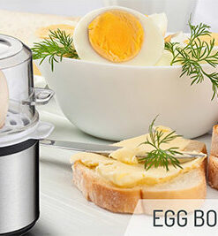 Το μεγάλο πλεονέκτημα του βραστήρα, είναι ότι ανάλογα με την ποσότητα νερού που χρησιμοποιούμε, επιλέγουμε αν θέλουμε να βράσουμε το αυγό λίγο βρασμένο, μεσαία ή πολύ βρασμένο. Διαθέτει ηχητικό σήμα όταν το νερό εξατμιστεί και απενεργοποιείται αυτόματα.