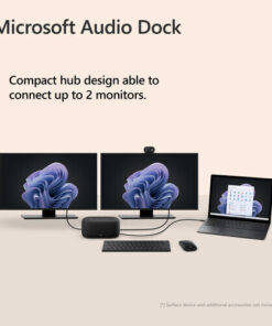 Με το Audio Dock MICROSOFT θα έχεις πάντα τακτοποιημένο γραφείο, μειώνοντας τον αριθμό των καλωδίων και των φορτιστών. Έτσι, διαθέτει μία θύρα HDMI με υποστήριξη υψηλής ανάλυσης έως 4Κ στην οποία μπορείς να συνδέσεις για παράδειγμα έναν προτζέκτορα και να απολαύσεις την παρουσίασή σου ή τη θέαση μίας ταινίας σε μεγάλη οθόνη. Επίσης, ενσωματώνει δύο θύρες USB Type-C, όπου υποστηρίζουν power delivery για γρήγορη φόρτιση και μεταφορά δεδομένων αλλά και μία USB Type-A 3.2 για σύνδεση συμβατών συσκευών, αξεσουάρ και περιφερειακών, όπως εξωτερικό σκληρό δίσκο, μνήμη USB και πολλά άλλα..