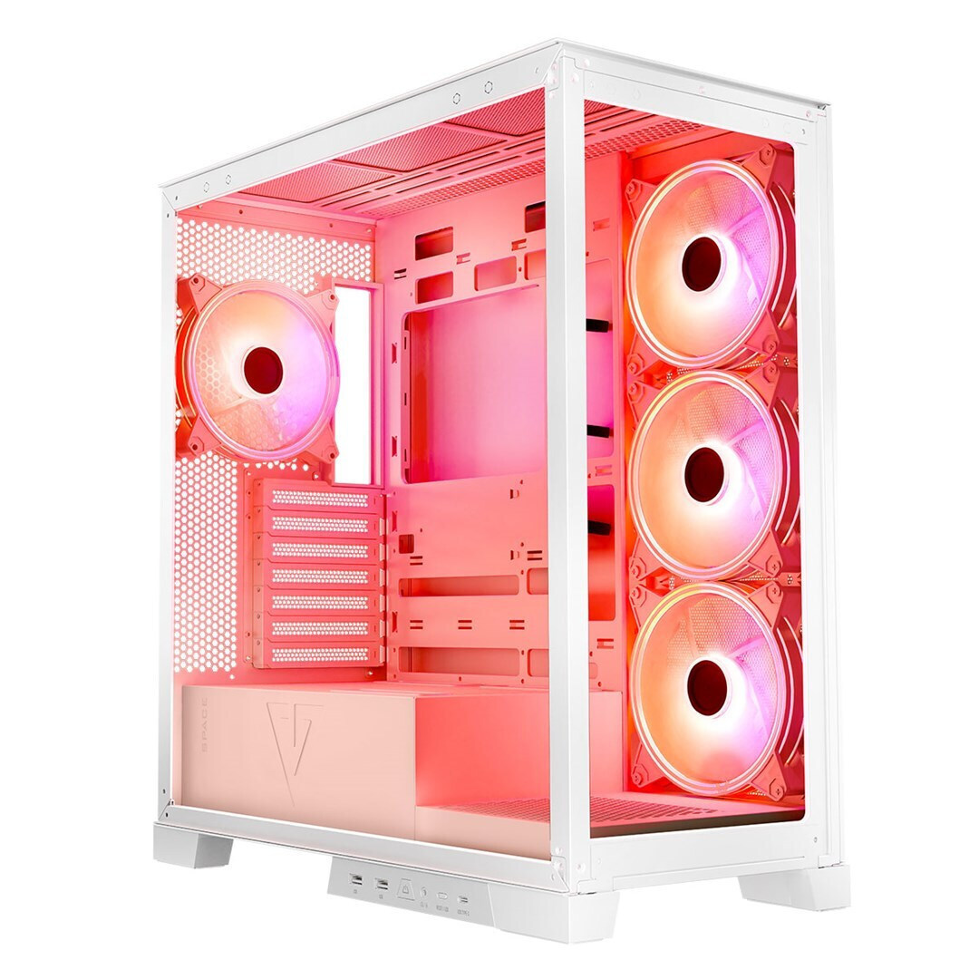 Η θήκη Volcano Space διαθέτει ειδική κατασκευή με πρόσοψη και πλευρικά πάνελ από tempered γυαλί, έτσι ώστε να φαίνονται όλοι οι εγκατεστημένοι υπολογιστές σχεδόν από κάθε γωνία.
