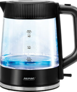 Ο βραστήρας MPM συνδυάζει ισχύ 2200 Watt και χωρητικότητα 1.7 λίτρα, ιδανικός για γρήγορο βράσιμο νερού. Με τη δυνατότητά του να παρασκευάσει έως και 8 φλιτζάνια ζεστό νερό, αποτελεί έναν αναγκαίο βοηθό για την κουζίνα σας, κάνοντάς σας να εξοικονομήσετε χρόνο σε σχέση με άλλες μεθόδους θέρμανσης. Η κανάτα του είναι κατασκευασμένη από πυρίμαχο γυαλί, εξασφαλίζοντας πλήρη ορατότητα κατά τη διάρκεια του βρασμού. Το γυαλί, πέρα από την αισθητική του, έχει το πλεονέκτημα ότι δεν αλλοιώνει τις γεύσεις ή τις οσμές, γεγονός που το καθιστά κατάλληλο για τις μαγειρικές σας παρασκευές. Ωστόσο, απαιτεί προσοχή, καθώς είναι πιο ευαίσθητο σε φθορές σε σχέση με τα πλαστικά μοντέλα. Συνιστάται η περιοδική αφαλάτωση για τη διατήρηση της συσκευής σε καλή κατάσταση.