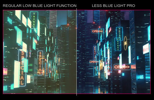 Το MPG 341CQPX QD-OLED διαθέτει τη λύση hardware, η οποία μπορεί να μειώσει το HEV, αλλά να διατηρήσει την ίδια ποιότητα εικόνας χωρίς να εμφανίζει οθόνη κίτρινου τόνου. Αυτή η τεχνολογία είναι ενσωματωμένη στο στρώμα του πάνελ, πράγμα που σημαίνει ότι είναι πάντα ενεργοποιημένη και οι χρήστες δεν χρειάζεται να την ενεργοποιούν/απενεργοποιούν χειροκίνητα.