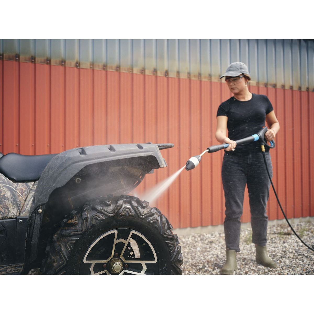 - Ένα εργονομικά σχεδιασμένο πιστόλι ψεκασμού επιτρέπει στο μηχάνημα να λειτουργεί πιο αποτελεσματικά με χαμηλότερη πίεση και μειώνει τον κίνδυνο καταπόνησης