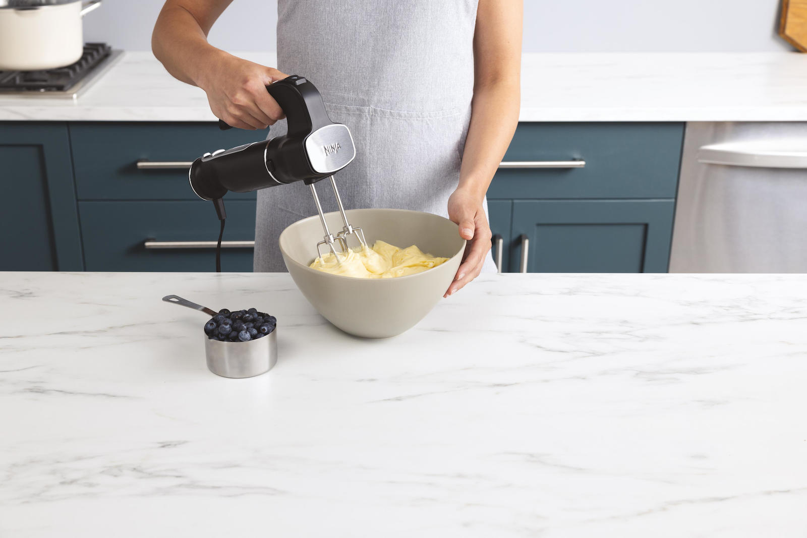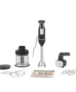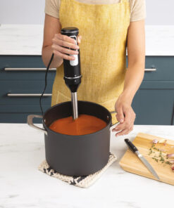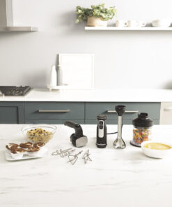 Με το μπλέντερ χειρός μπορείτε να ετοιμάσετε κρεμώδεις σούπες, σάλτσες, πουρέδες και ντιπ, όπως χούμους, πέστο και πάστες κάρυ. Το εξάρτημα από ανοξείδωτο χάλυβα με οπές αέρα έχει σχεδιαστεί για ανθεκτικότητα και απόδοση. Η ομοιόμορφη κατανομή βάρους σάς επιτρέπει να χειρίζεστε το μπλέντερ χειρός με το ένα χέρι, καθιστώντας εύκολη την προσθήκη συστατικών ή τη ρύθμιση της ταχύτητας κατά την ανάμειξη. - Μίξερ χειρός