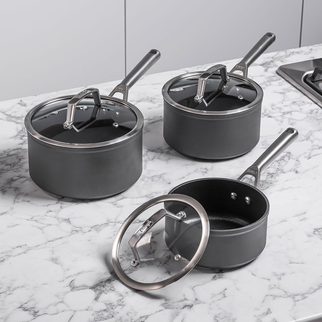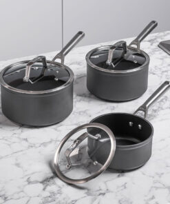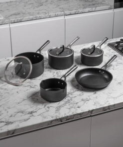 Ανακαλύψτε την ποιότητα και την ευκολία στην κουζίνα με το σετ κατσαρολών Ninja, που αποτελείται από πέντε τμχ. Κατασκευασμένο από αλουμίνιο, αυτό το σετ έχει σχεδιαστεί για να προσφέρει εξαιρετική αντοχή και μακροχρόνια χρήση.