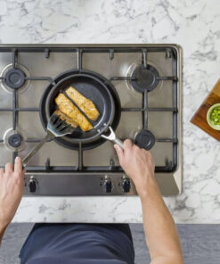 Η αντικολλητική επίστρωση του εσωτερικά εξασφαλίζει ότι τα τρόφιμα δεν κολλούν κατά την παρασκευή, κάνοντάς το ιδανικό για υγιεινές συνταγές με λιγότερο λάδι. Επιπλέον, είναι συμβατό με κεραμικές εστίες, καθιστώντας το ιδανικό για κάθε σύγχρονη κουζίνα.