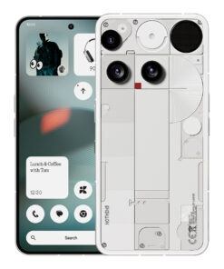 Το Phone (3) συνεχίζει τη σχεδιαστική ταυτότητα της Nothing με έμφαση στη διαφάνεια και τη λεπτομέρεια. Η πλάτη είναι κατασκευασμένη από ανθεκτικό γυαλί Gorilla Glass, αποκαλύπτοντας τον εσωτερικό σχεδιασμό της συσκευής. Το μεταλλικό πλαίσιο προσδίδει στιβαρότητα, ενώ οι γραμμές είναι απλές, καθαρές και μοντέρνες. Πιστοποίηση IP68 για προστασία από νερό και σκόνη.