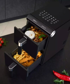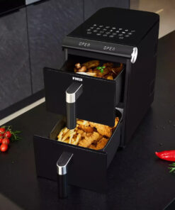 Το DoubleCrisp AF5050 X-LINE έχει σχεδιαστεί για να χωράει ακόμα και στις πιο μικρές κουζίνες, χάρη στον κάθετο σχεδιασμό του. Με χωρητικότητα 11 λίτρα, αλλά χωρισμένο σε δύο μπολ των 5.5 λίτρων, σου δίνει τη δυνατότητα να μαγειρέψεις δύο διαφορετικά πιάτα ταυτόχρονα – τέλειο για να γλιτώσεις χρόνο και να εντυπωσιάσεις οικογένεια και φίλους!