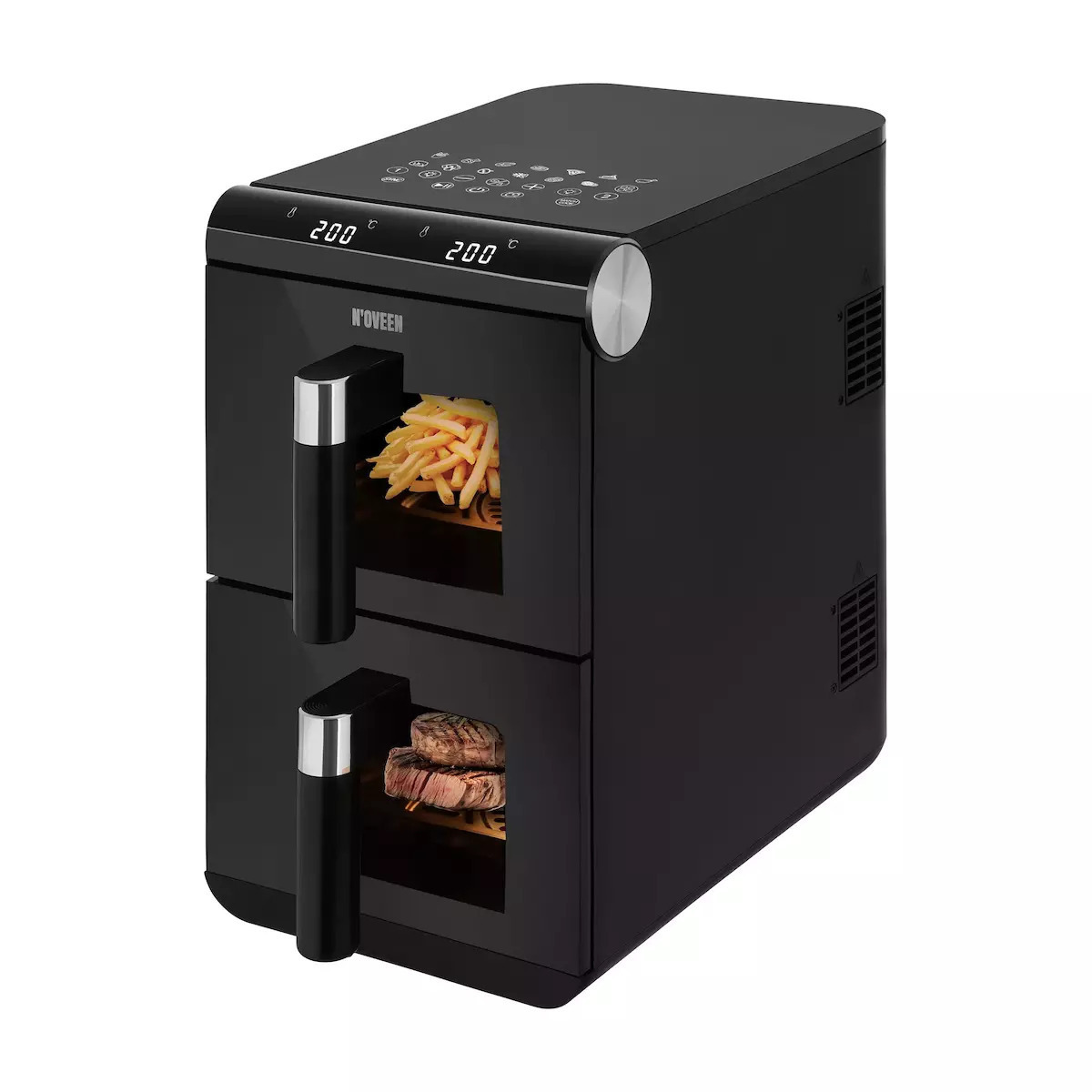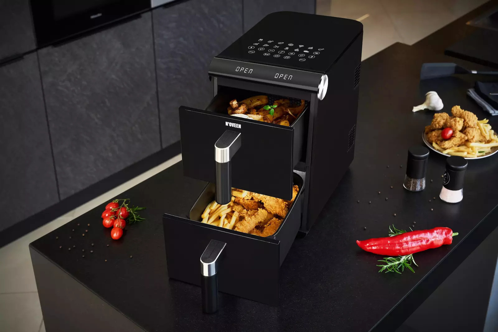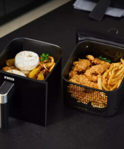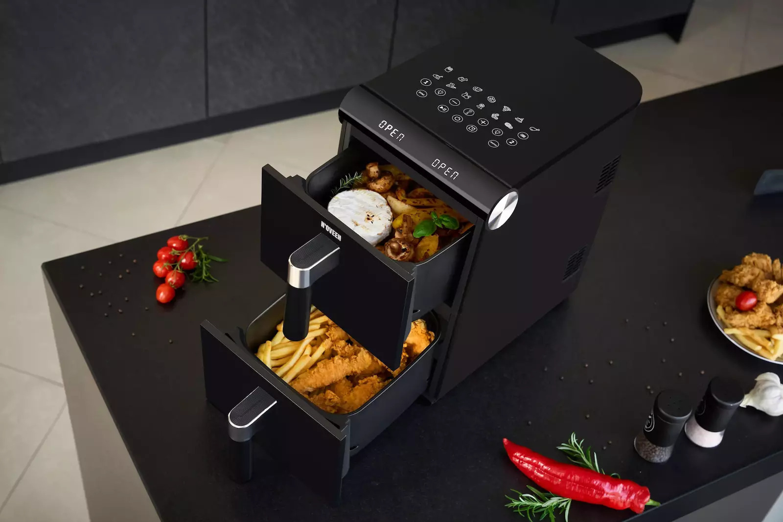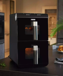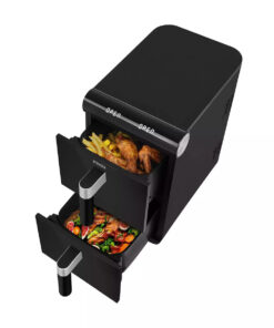 ✓ Με δύο ανεξάρτητα μπολ 5,5 λίτρων, 13 αυτόματα προγράμματα, έξυπνη λειτουργία SYNC για να τελειώνουν ταυτόχρονα τα φαγητά, και τεχνολογία Fry Force 360°, ψήνεις γρήγορα, υγιεινά και χωρίς κόπο, ενώ παρακολουθείς το φαγητό μέσα από τα φωτιζόμενα παράθυρα χωρίς να ανοίγεις.