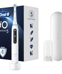 Επαναφορτιζόμενη ηλεκτρική οδοντόβουρτσα iO Series 5 της Oral-B, η οποία συνδυάζει το μοναδικό σχεδιασμό με την τεχνολογία τεχνητής νοημοσύνης για επαγγελματική καθημερινή φροντίδα και καθαριότητα των δοντιών.