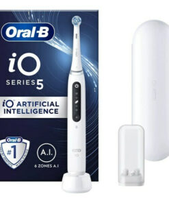 Επαναφορτιζόμενη ηλεκτρική οδοντόβουρτσα iO Series 5 της Oral-B, η οποία συνδυάζει το μοναδικό σχεδιασμό με την τεχνολογία τεχνητής νοημοσύνης για επαγγελματική καθημερινή φροντίδα και καθαριότητα των δοντιών.