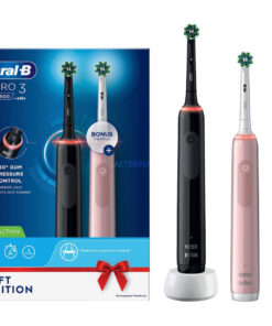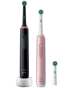 Οδοντόβουρτσα Oral-B PRO 3 για λευκότερα δόντια μετά την πρώτη χρήση, αφαιρώντας τις επιφανειακές δυσχρωμίες. Αφαιρεί έως και 100% περισσότερη βακτηριακή πλάκα σε σύγκριση με τις χειροκίνητες οδοντόβουρτσες.