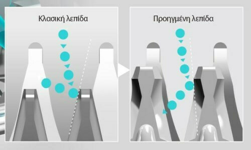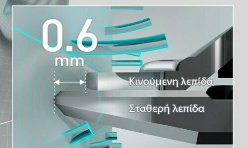 Οι κινούμενες λεπίδες είναι ειδικά σχεδιασμένες με ανεστραμμένο σφηνοειδές σχήμα, για σταθερό πιάσιμο και κόψιμο των τριχών που συχνά ξεφεύγουν.