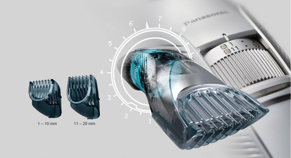Για να μπορείτε εύκολα να κουρέψετε τα μαλλιά και τα γένια σας στο ιδανικό μήκος, ο προσαρμόσιμος επιλογέας παρέχει 38 ακριβείς ρυθμίσεις μήκους: 1-20 mm σε διαστήματα των 0,5 mm.