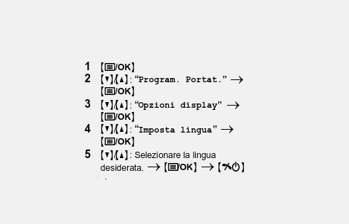 Η συσκευή διαθέτει μενού στα ελληνικά, ενδέχεται όμως να έρθει με προεγκατεστημένη γλώσσα τα ιταλικά. Στην περίπτωση αυτή, ακολούθησε τις οδηγίες της εικόνας για να επιλέξεις την ελληνική γλώσσα.