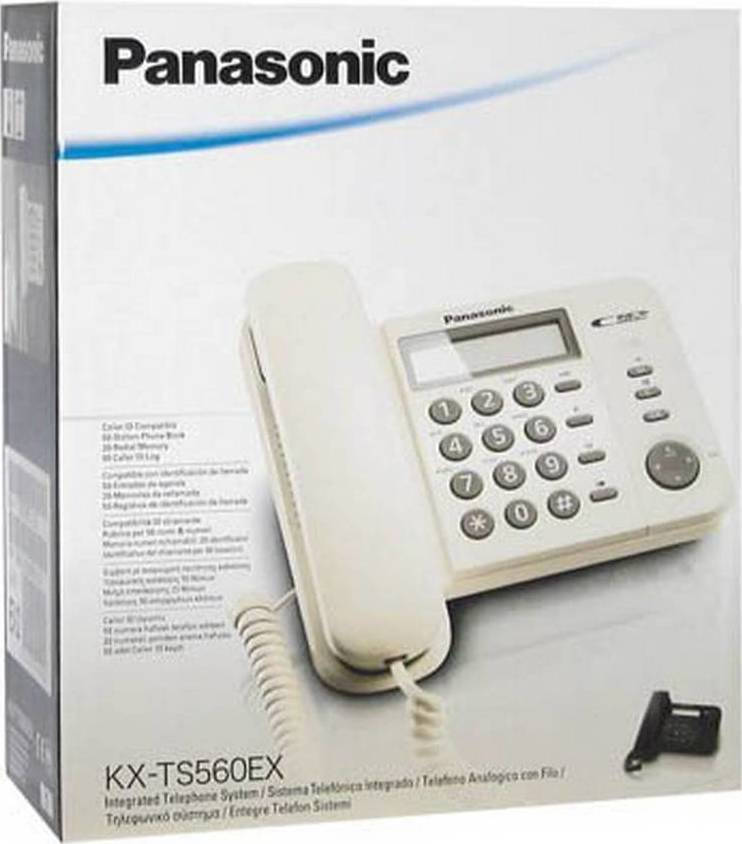 Panasonic KX-TS560 με LCD οθόνη, 50 μνήμες, αναγνώριση καλούντος και κλείδωμα πληκτρολογίου, μεταφορά κλήσεων, φραγή εξερχομένων κλήσεων και mute. Επιπλέον η οθόνη παρέχει όλες τις απαραίτητες πληροφορίες για τις κλήσεις σου όπως ένδειξη ημερομηνίας, ώρας και διάρκειας κλήσης ενώ ταυτόχρονα σου δίνει τη δυνατότητα επανάκλησης τελευταίου αριθμού.