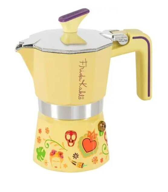 Αυτό το μπρίκι όχι μόνο παρασκευάζει εξαιρετικό καφέ αλλά λειτουργεί και ως διακοσμητικό αντικείμενο. Εμπνευσμένο από τα έργα της Frida Kahlo, διαθέτει ζωντανά λουλούδια και εμβληματικά κρανία που αντικατοπτρίζουν τη βαθιά σύνδεσή της με τον μεξικανικό πολιτισμό. Το φωτεινό κίτρινο χρώμα συμβολίζει την τρέλα, τον ήλιο και τη χαρά, ενώ η κίτρινη-πράσινη απόχρωση αντιπροσωπεύει το μυστήριο.