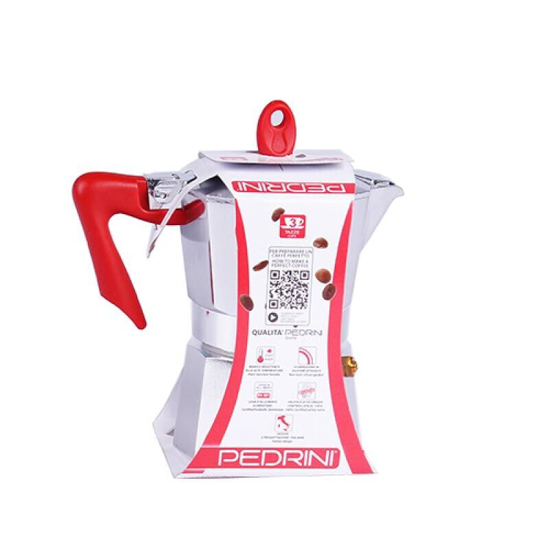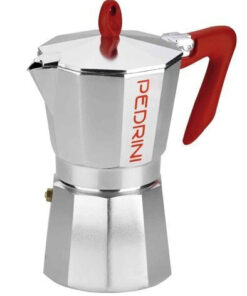 Το μπρίκι espresso Pedrini από αλουμίνιο 3 φλυτζανιών σε ασημί-κόκκινο χρώμα (9083-0) είναι μία ποιοτική ιταλική καφετιέρα για μπαταρία, ιδανική για όσους εκτιμούν τον αυθεντικό espresso. Κατασκευασμένο από ασφαλές για τρόφιμα, γυαλιστερό αλουμίνιο, αυτό το μπρίκι υπόσχεται ανθεκτικότητα και ποιότητα.