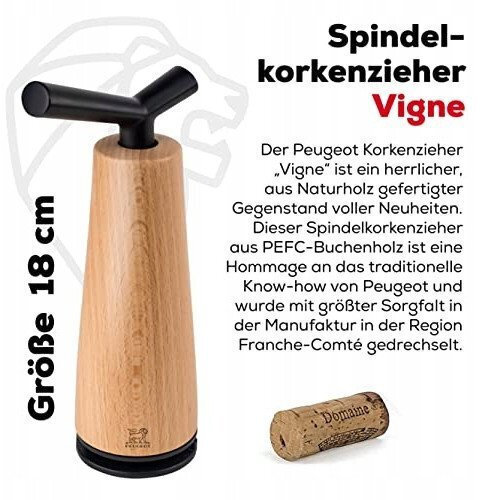 Το Peugeot Vigne Wood Korkenzieher 18cm NATURAL είναι ένα premium τιρμπουσόν σχεδιασμένο για λάτρεις του κρασιού που εκτιμούν τόσο την παράδοση όσο και τη σύγχρονη καινοτομία.