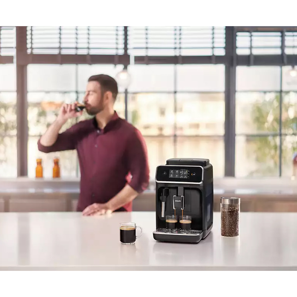 Η μηχανή EP2224 της Phillips, πίεσης 15 bar και κεραμικό μύλο άλεσης καφέ με 12 ρυθμίσεις άλεσης δημιουργεί ταυτόχρονα 2 ροφήματα, απολαμβάνοντας τέλειο καφέ στο σπίτι.