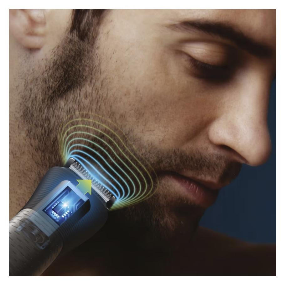Το τρίμερ διαβάζει την πυκνότητα των γενιών 125 φορές ανά δευτερόλεπτο και αυξάνει την ισχύ ακριβώς όταν το χρειάζεστε για να αντιμετωπίσετε και τα πυκνά, φουντωτά ή μακρύτερα γένια.