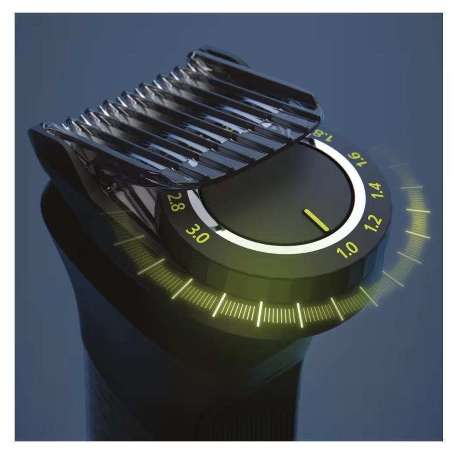 Το κατοχυρωμένο με δίπλωμα ευρεσιτεχνίας κοπτικό χτενάκι προσφέρει 11 ρυθμίσεις μήκους μεταξύ 1-3 χιλ., ώστε να επιτυγχάνετε ομοιόμορφο τριμάρισμα ακριβώς στο μήκος που θέλετε.