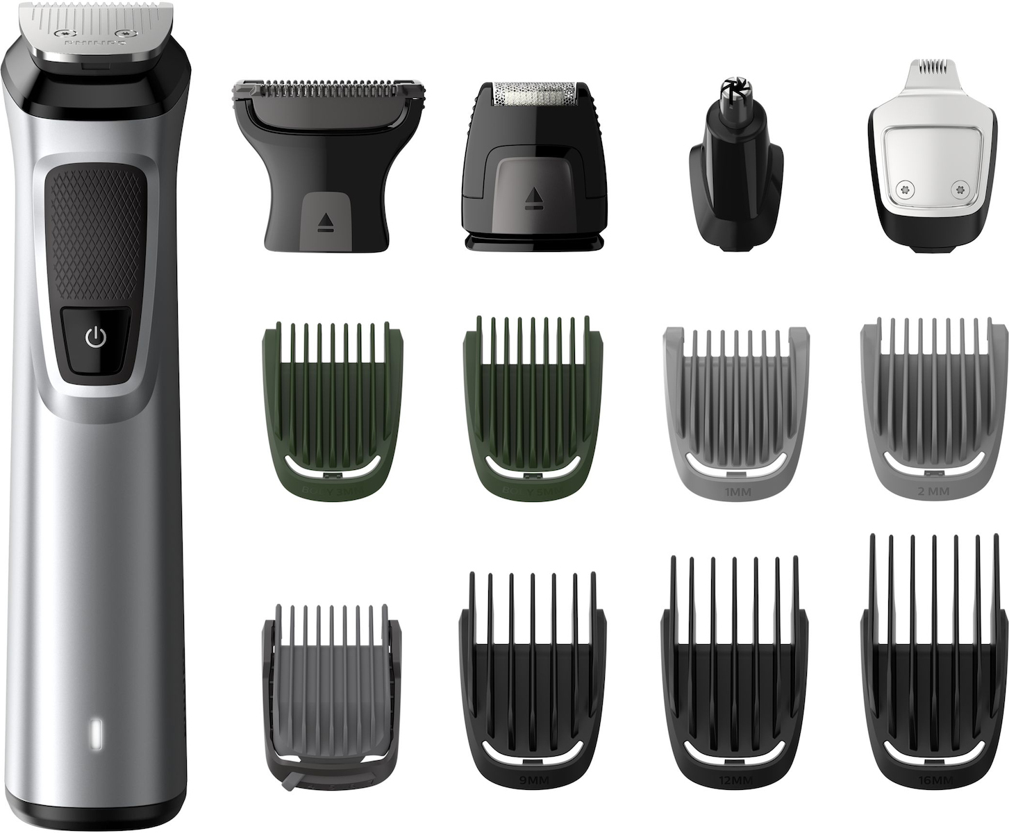 Το τρίμερ και το σετ πολλαπλών χτενών προσφέρουν 19 ρυθμίσεις μήκους από 0,5 έως 16 χιλ. σε βήματα ακριβείας έως και 0,2 χιλ., τόσο για πιο κοντά όσο και για πιο μακριά γένια. Η στενή σχεδίαση του εξαρτήματος τριμαρίσματος ακριβείας σας επιτρέπει να δημιουργείτε καθαρές γωνίες και λεπτομέρειες. Καθαρίστε τα μάγουλα, το πηγούνι και το λαιμό με το μεταλλικό τρίμερ για να ολοκληρώσετε το λουκ σας.