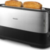 2 μεγάλες μεταβλητές υποδοχές για διαφορετικό μέγεθος ψωμιού. Το ψωμί παραμένει στο κέντρο για ομοιόμορφο ψήσιμο και στις δύο πλευρές, χάρη στη λειτουργία αυτόματης τοποθέτησης στο κέντρο.
