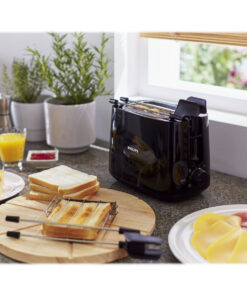 2 μεγάλες μεταβλητές υποδοχές για διαφορετικό μέγεθος ψωμιού. Το ψωμί διατηρείται στο κέντρο για ομοιόμορφο μαύρισμα και στις δύο πλευρές, χάρη στο χαρακτηριστικό αυτοκεντρισμού.