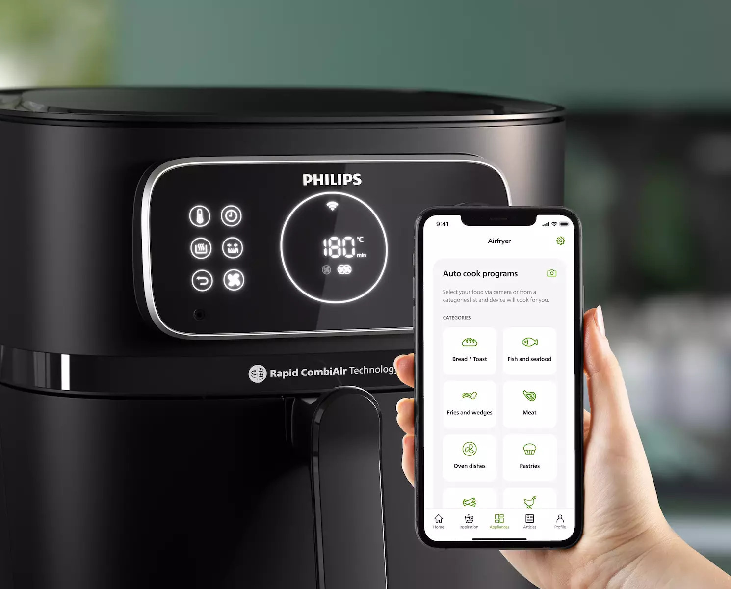 Επιλέξτε μια συνταγή στην εφαρμογή HomeID και στείλτε τη στο Airfryer. Παρακολουθήστε την πρόοδο της δημιουργίας σας από την άνεση του καναπέ σας.