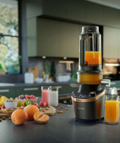 Το νέο μπλέντερ Flip & Juice της Philips είναι το πρώτο μπλέντερ υψηλής ταχύτητας με μονάδα αποχυμωτή. Χάρη στον επαναστατικό σχεδιασμό της κανάτας και το ενσωματωμένο φίλτρο, μπορείτε να απολαμβάνετε το ποτό σας με υφή προσαρμοσμένη στις προτιμήσεις σας. Από απόλυτα μεταξένια smoothie έως χυμούς με ή χωρίς πούλπα, το πλέον εξελιγμένο μπλέντερ προσφέρει τη μεγαλύτερη ποικιλία. Συνδυάζει λειτουργίες μπλέντερ και αποχυμωτή σε μία λύση, εξοικονομώντας χώρο στην κουζίνα σας.