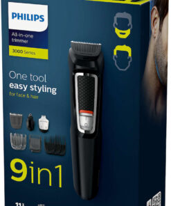 Το τρίμερ “όλα σε ένα” Philips Multigroom 3000 διαθέτει 9 εξαρτήματα που έχουν σχεδιαστεί για να περιποιείστε με άνεση τα γένια σας και να κουρεύετε τα μαλλιά σας.