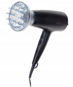 Πιστολάκι μαλλιών της Philips, που διαθέτει υψηλή ισχύ με δυνατή ροή αέρα για γρήγορο στέγνωμα και φορμάρισμα των μαλλιών. Επιπλέον, διαθέτει φυσούνα για το φορμάρισμα των σπαστών ή σγουρών μαλλιών. Η ροή του αέρα κατανέμεται κατά μήκος της τρίχας, ενισχύοντας τον όγκο και μειώνοντας το φριζάρισμα κατά το στέγνωμα. Για καλύτερα αποτελέσματα, θα πρέπει η φυσούνα να χρησιμοποιείται κοντά στις ρίζες των μαλλιών.