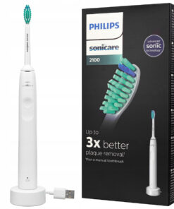 Επαναφορτιζόμενη ηλεκτρική οδοντόβουρτσα Sonicare 2100 της Philips, η οποία χάρη στην τεχνολογία Sonic αφαιρεί περισσότερη πλάκα, προσφέροντας ισχυρό, αλλά ταυτόχρονα απαλό καθαρισμό.