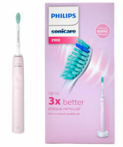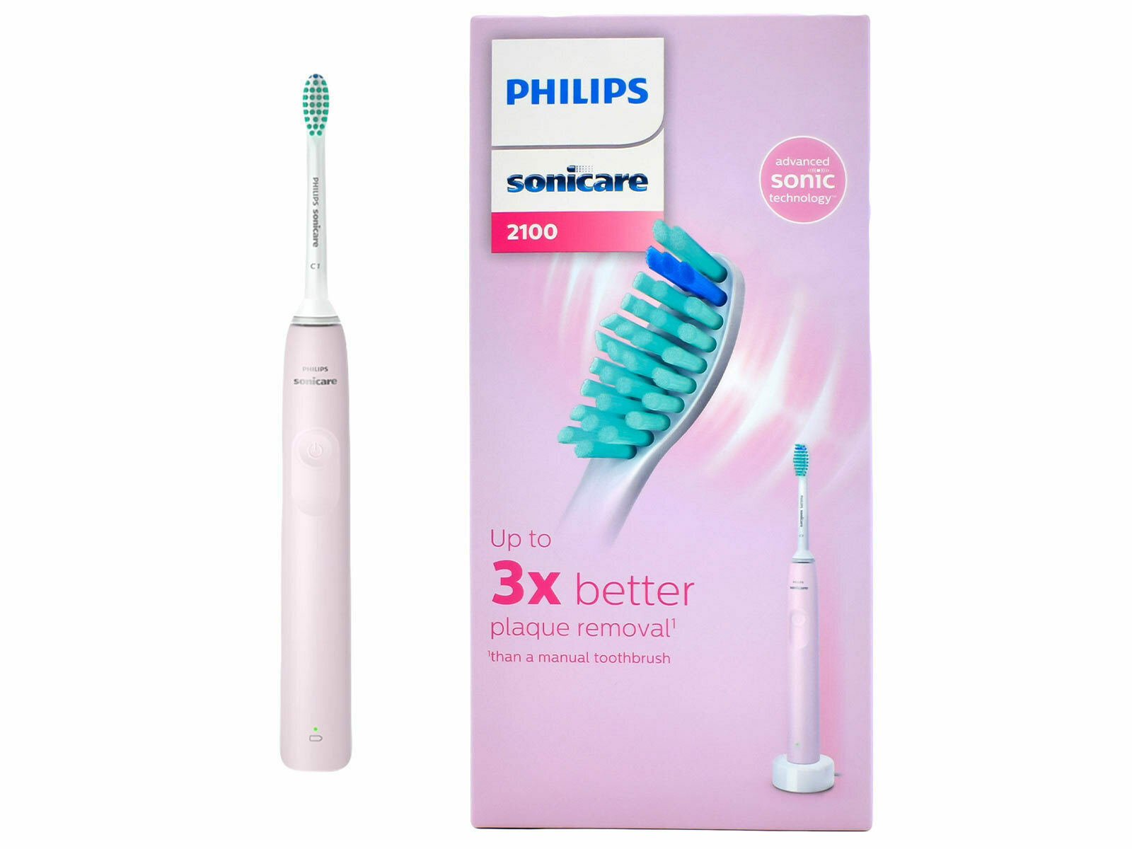 Επαναφορτιζόμενη ηλεκτρική οδοντόβουρτσα Sonicare 2100 της Philips, η οποία χάρη στην τεχνολογία Sonic αφαιρεί περισσότερη πλάκα, προσφέροντας ισχυρό, αλλά ταυτόχρονα απαλό καθαρισμό.