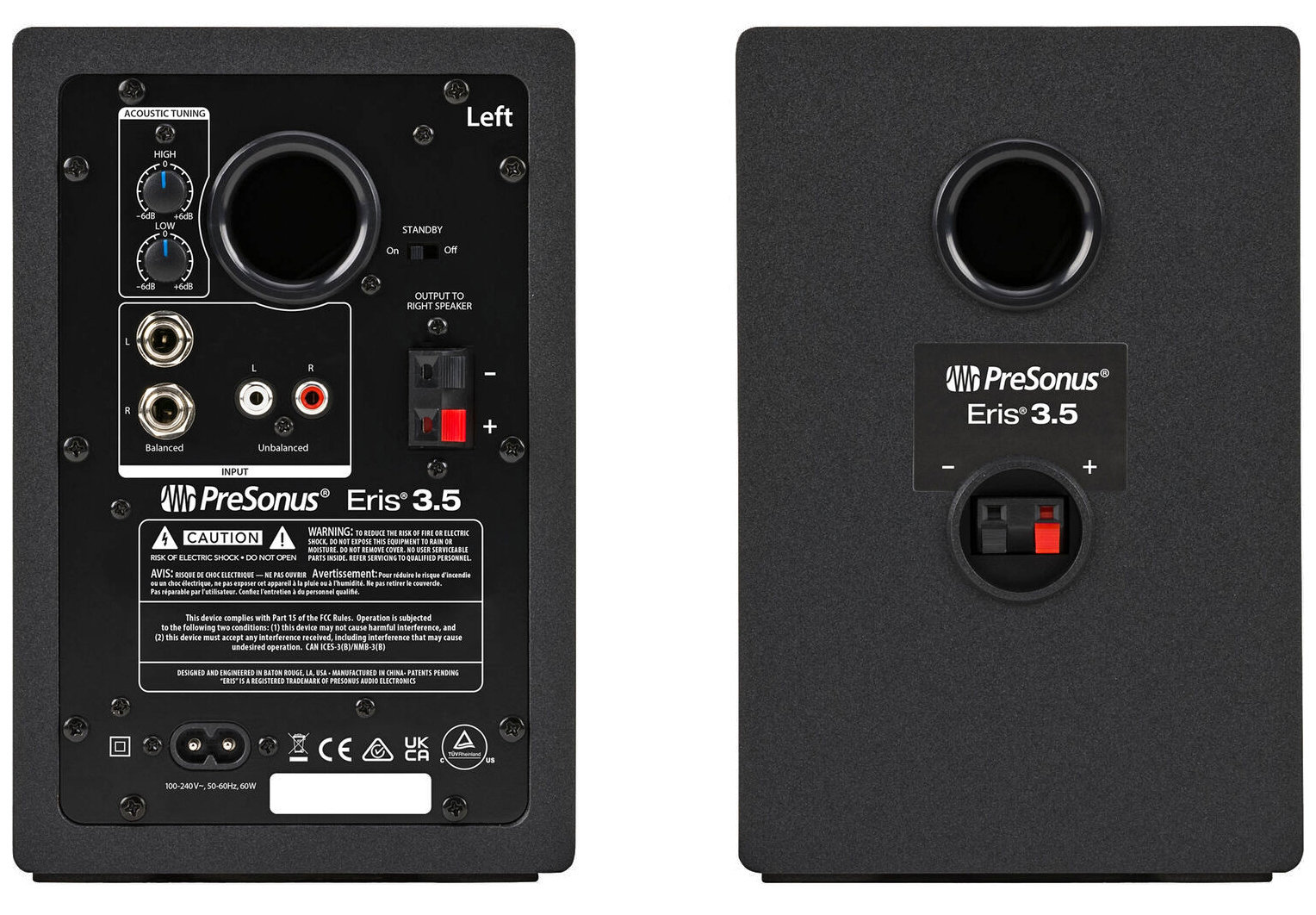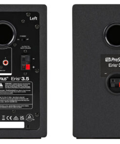 Στα 50 watt, τα Eris 3.5 studio monitors της Presonus είναι μία εξαιρετική επιλογή για παραγωγούς, gamers και φιλόμουσους που δουλεύουν και ακούν σε περιορισμένους χώρους. Κάθε ηχείο είναι εξοπλισμένο με ένα woofer 3.5″ και ένα μεταξωτό twitter θόλου 1″, αποδίνοντας πεντακάθαρη και ελεγχόμενη αναπαραγωγή των κομματιών σας! Επιπλέον, οι πολλαπλοί τρόποι σύνδεσης και ο εργονομικός σχεδιασμός επιτρέπουν στα Eris 3.5 studio monitors να συμπεριληφθούν σε οποιοδήποτε υπάρχον σύστημα χωρίς κανένα πρόβλημα. Τέλος χάρη στη vinyl-laminated κατασκευή από ισοσανίδες, τα Eris 3.5 είναι κατασκευασμένα για να σας προσφέρουν χρόνια ασύγκριτης ηχητικής απόδοσης! Τα Eris 3.5 της Presonus φέρουν ένα ζεύγος balanced TRS εξόδους και L/R RCA jacks στο πίσω μέρος, δίνοντας πολλαπλούς τρόπους σύνδεσης για να υποστηρίξουν όλες τις δυνατές συνδέσεις. Τέλος δεν χρειάζεται να σκέφτεστε για την ένταση τα 50W εξόδου υπόσχονται ζωντανό ήχο σε κάθε μικρής κλίμακας στούντιο η δωμάτιο. Είναι κρίσιμο να διατηρηθεί ένα ισορροπημένο αποτέλεσμα όταν τελειοποιείτε την μίξη σας. Με τα περιστρεφόμενα ρυθμιστικά στο πίσω μέρος έχετε πλήρη έλεγχο στην απόδοση των χαμηλών και υψηλών συχνοτήτων, δίνοντας σας της δυνατότητα να τελειοποιήσετε το ηχητικό σας αποτέλεσμα ώστε να ταιριάζει τέλεια με το περιβάλλον ακρόασης σας.