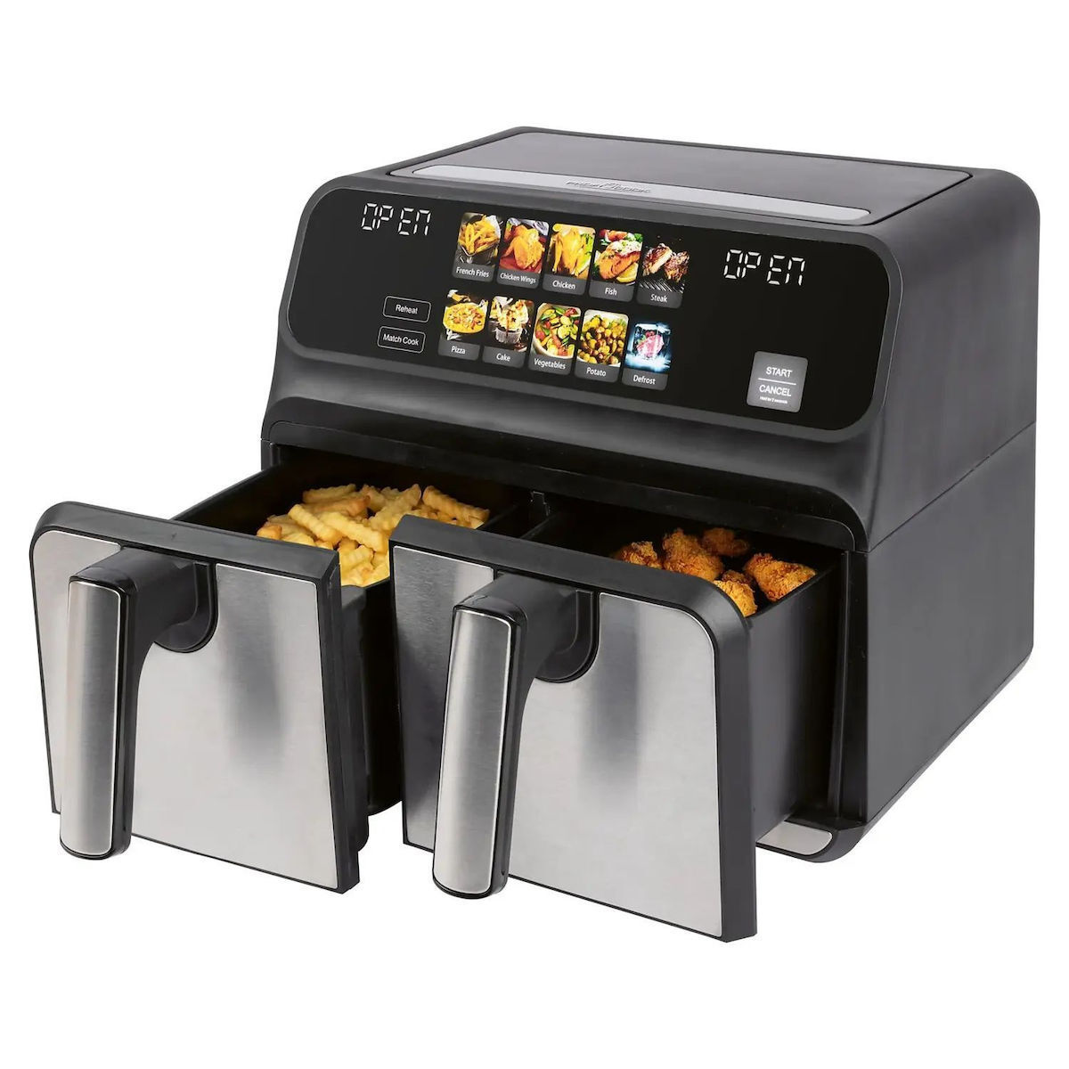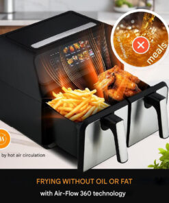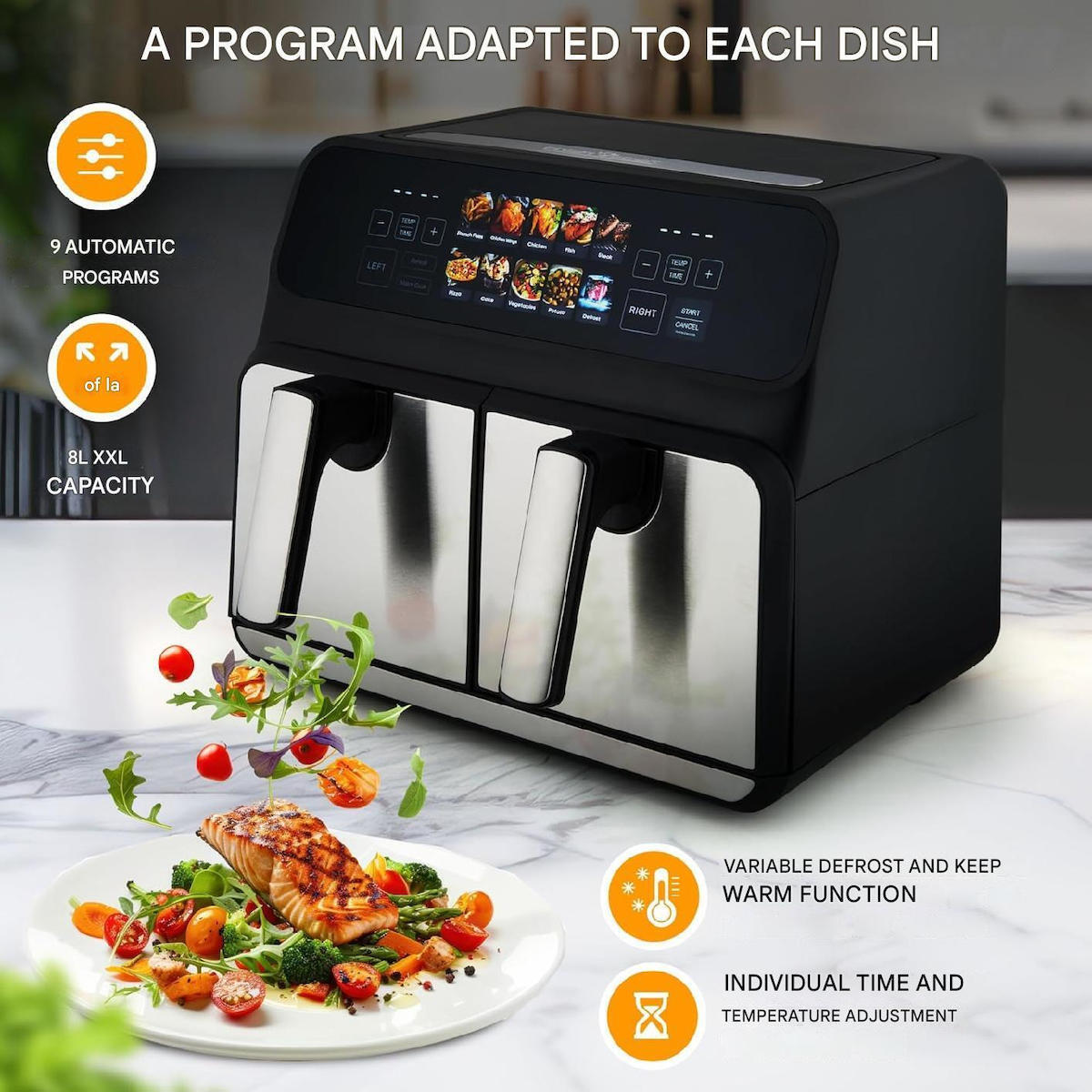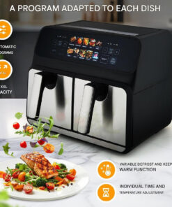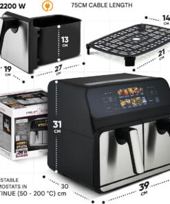 Η Φριτέζα ProfiCook PC-FR 1287 H είναι μια υψηλής απόδοσης φριτέζα αέρος, σχεδιασμένη για γρήγορο και αποτελεσματικό μαγείρεμα. Το μοντέρνο μαύρο και ανοξείδωτο ατσάλι σχέδιο της ταιριάζει απόλυτα σε κάθε κομψή κουζίνα. Αυτή η διπλή φριτέζα αέρος διαθέτει γενναιόδωρη χωρητικότητα 8 λίτρων, επιτρέποντάς σας να προετοιμάσετε μεγαλύτερες ποσότητες φαγητού, κάνοντάς την ιδανική για οικογένειες ή συγκεντρώσεις.