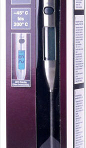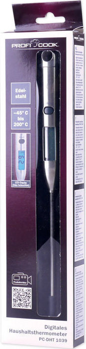 Ανοξείδωτο ψηφιακό θερμόμετρο κουζίνας για να ελέγχετε την θερμοκρασία φαγητών όπως ψητά, κρέας και ψάρι καθώς επίσης και για ποτά, όπως κρασί, σαμπάνια και αφρώδεις οίνοι. Εύρος θερμοκρασίας μέτρησης: -45°C έως 200°C.
