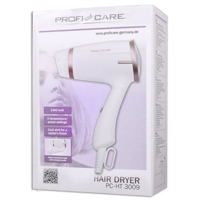 Σεσουάρ μαλλιών 1400W, με αναδιπλούμενη λαβή, σε λευκό/σαμπανί χρώμα.