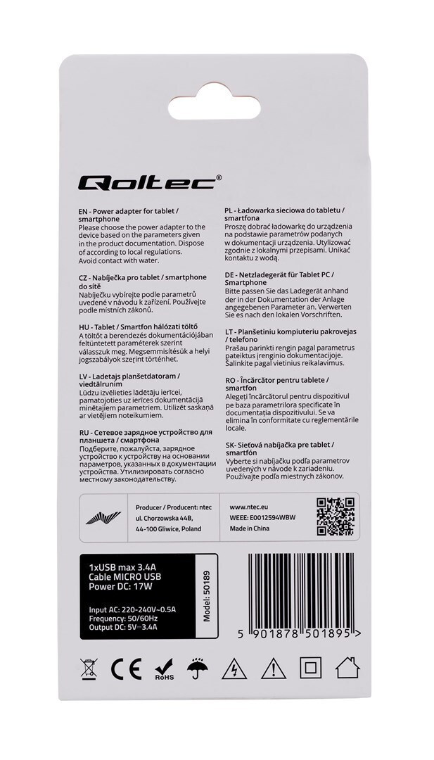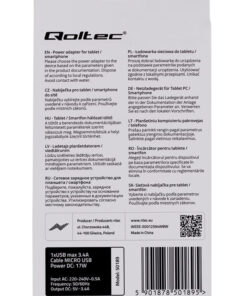Είναι η αξιοπιστία κρίσιμη για εσάς; Επιλέξτε έναν φορτιστή Qoltec που θα σας επιτρέψει να τροφοδοτήσετε με ασφάλεια τις φορητές συσκευές σας. Ιδανικό για χρήση στο σπίτι ή στο γραφείο ως κύριος ή πρόσθετος φορτιστής. Είναι κατασκευασμένο από υλικά υψηλής ποιότητας και οι τεχνολογίες που χρησιμοποιούνται σε αυτό επιτρέπουν χαμηλή κατανάλωση ενέργειας και υψηλή απόδοση.