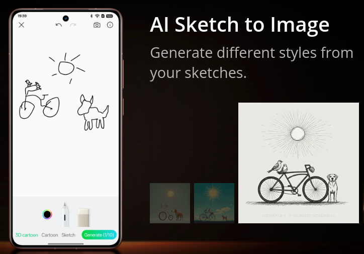 - Λειτουργίες Τεχνητής Νοημοσύνης (AI): Περιλαμβάνει λειτουργίες όπως το AI Sketch to Image, που επιτρέπει τη δημιουργία εικόνων από σκίτσα, και το AI Motion Deblur για βελτίωση της ευκρίνειας σε κινούμενα θέματα.